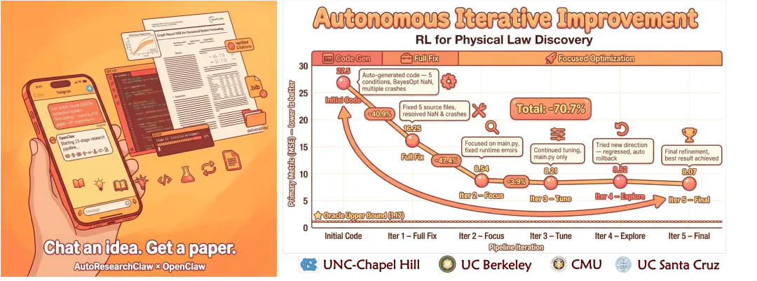 最近刷到一个很猛的开源项目,叫AutoResearchClaw。它不是那种帮你润色句子、改改格式的普通 AI 写作助手,而是一整套从想法到论文全流程自治系统。简单说:你丢一个研究方向,它自己查文献、做实验、分析结果、写论文、做同行评审,最后直接给你一份完整稿件。