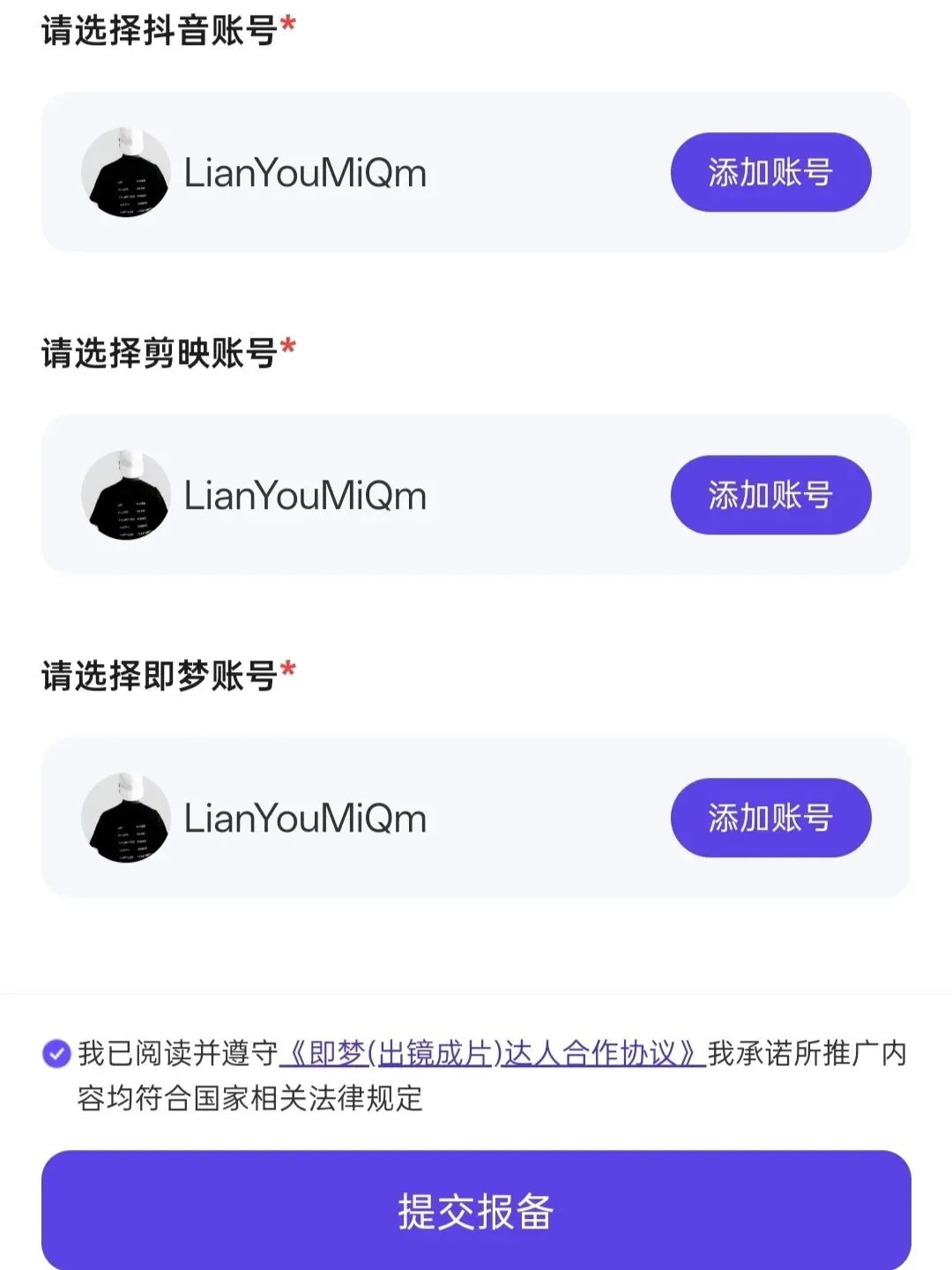 第三步、需要对抖音、剪映、即梦进行授权,如何授权,站内教程里都有,分别添加,提交报备即可!