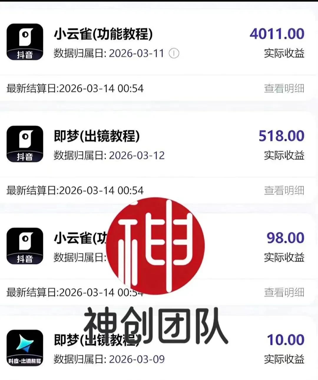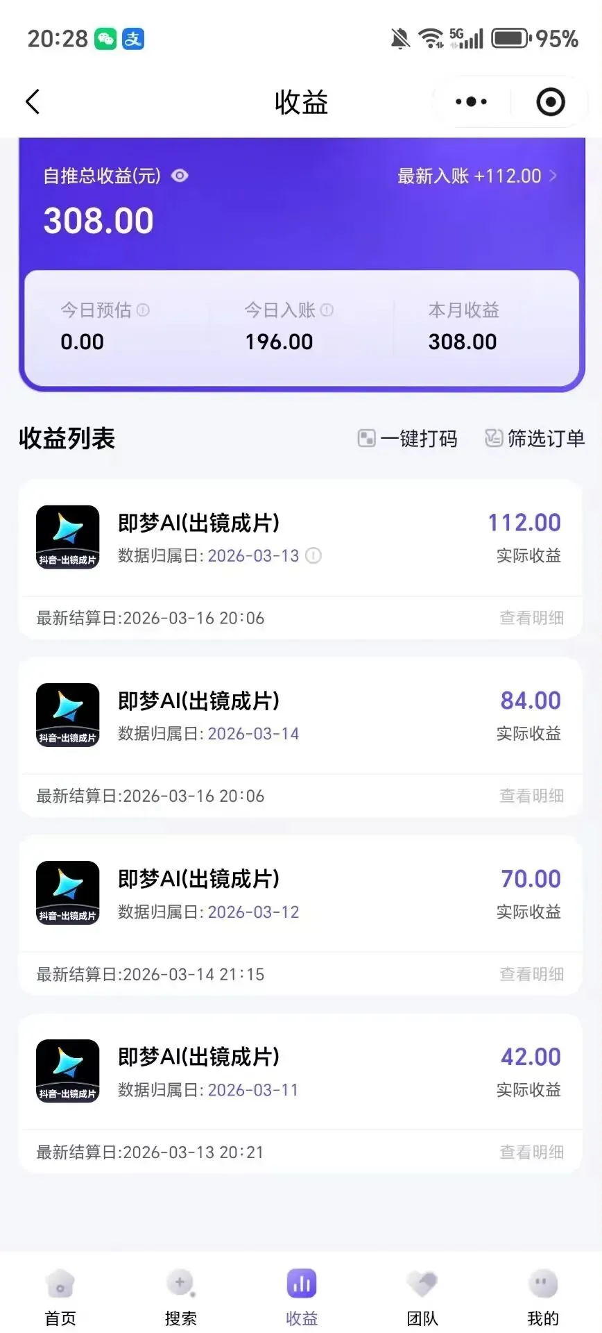 七、收益部分:有两种,一种是流量收益,还有一个是拉新收益!就是别人在抖音刷到你的视频在你的视频里去下载Ai即梦,就算拉新,一单7米,T+3结算!
