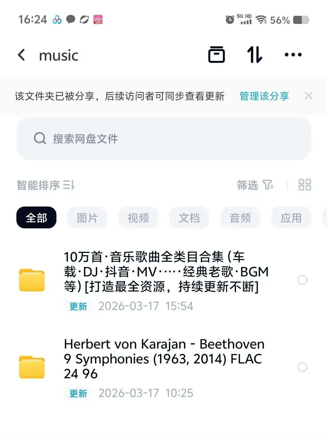 可能是文件比较多的原因吧,一打开文件夹,可能会是下面的情况,不要怀疑,音乐是一定有的,点击刷新后,音乐资源就出来了,看第二张图