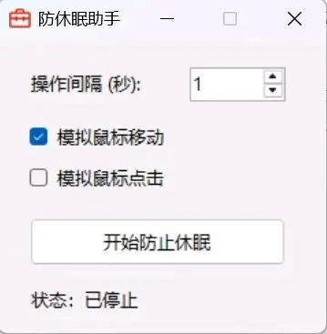 4. 点击【开始防止休眠】,最小化到后台即可。