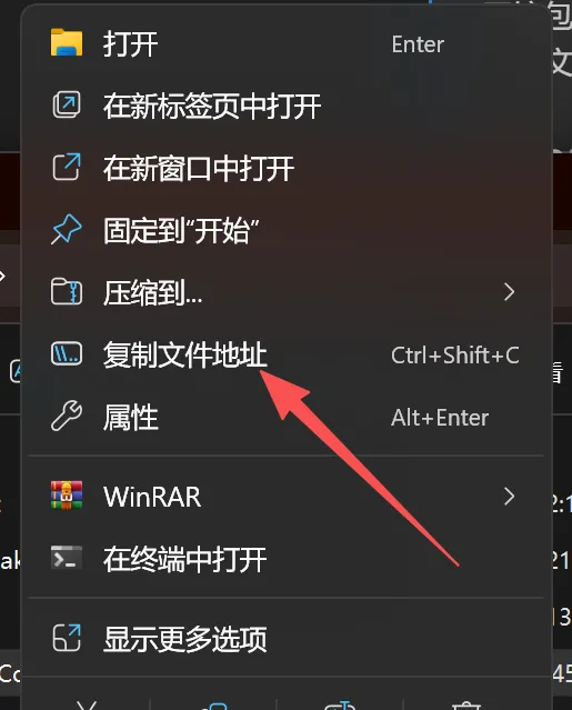 💡 绝对路径从哪来? 直接在资源管理器里复制:点击地址栏,全选后按 Ctrl + C复制,然后加文件名就行;如果是文件名也可以按照下图右击复制。