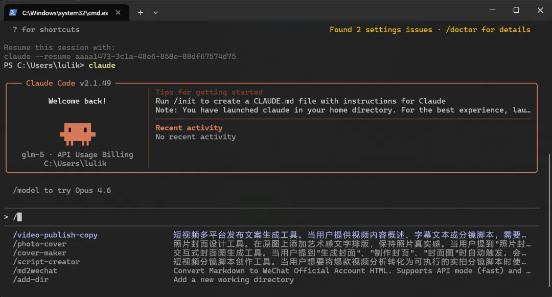 好了,现在你已经正确进入了 Claude Code 的界面。