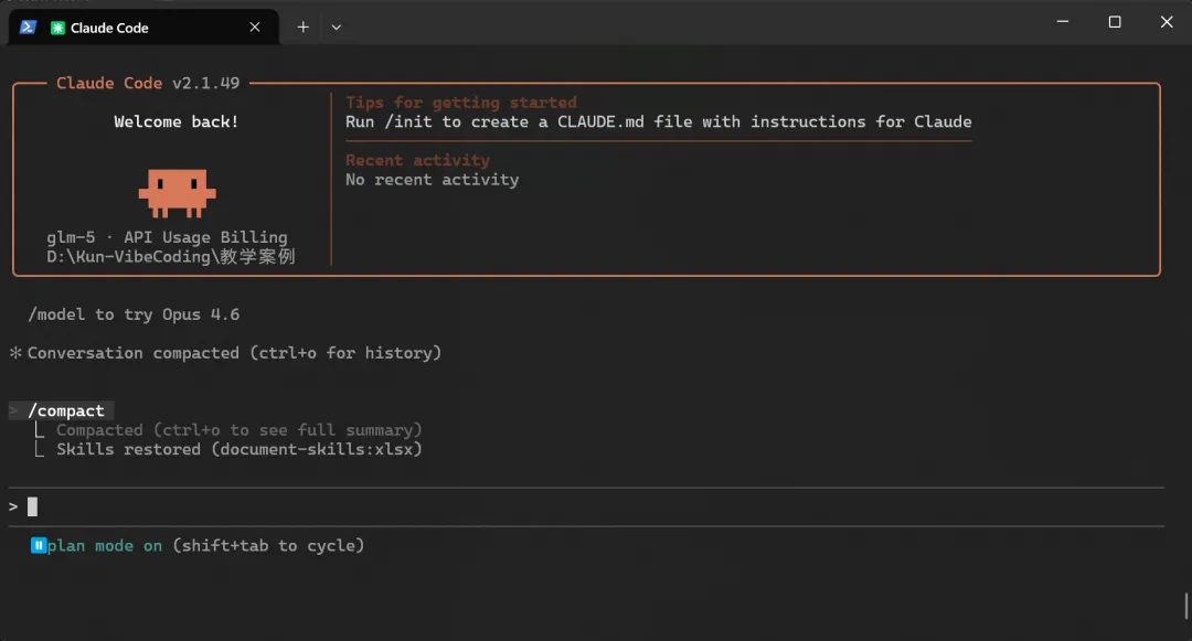 方案一:用 /compact 压缩