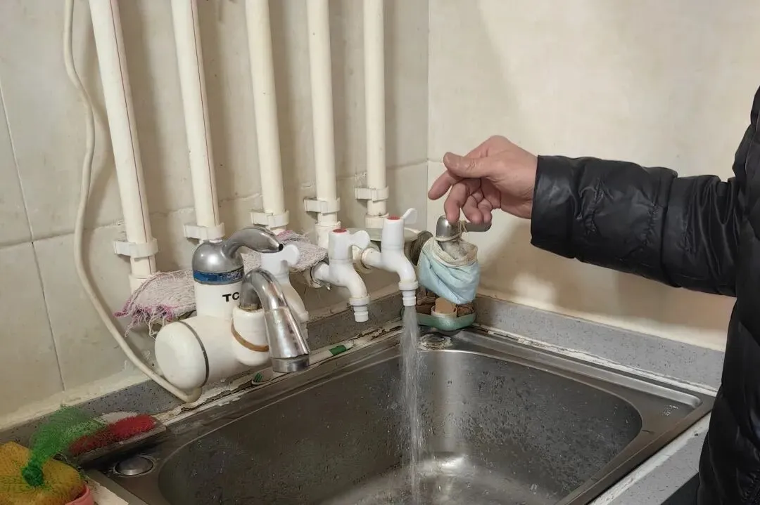 工作人员通过公告栏、居民微信群等多种渠道将施工信息告知居民,得到了其余楼层居民的支持。当汩汩清流从水龙头涌出时,围观居民纷纷竖起了大拇指。