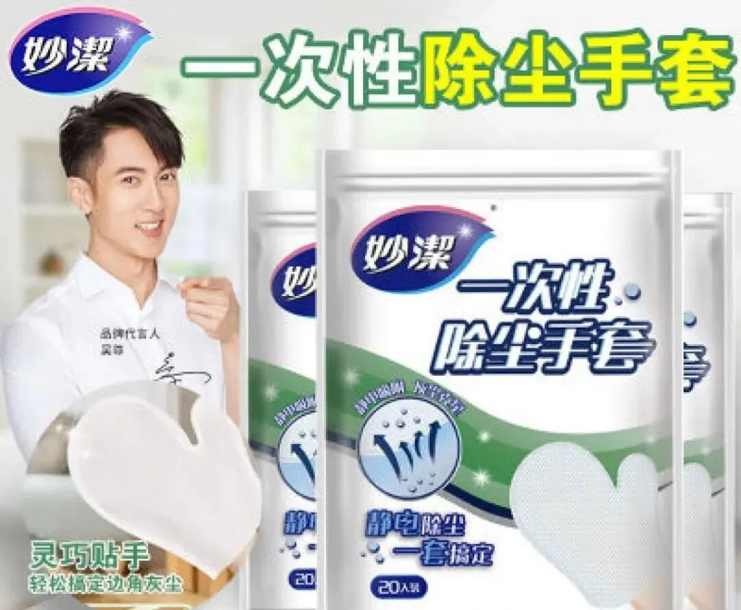 全屋除尘妙洁的手套,它不太扬尘,非常抓灰,用电视机一试就非常明显了。当代年轻人家里面小零碎多的就一手套一个,一会儿就全干净了。