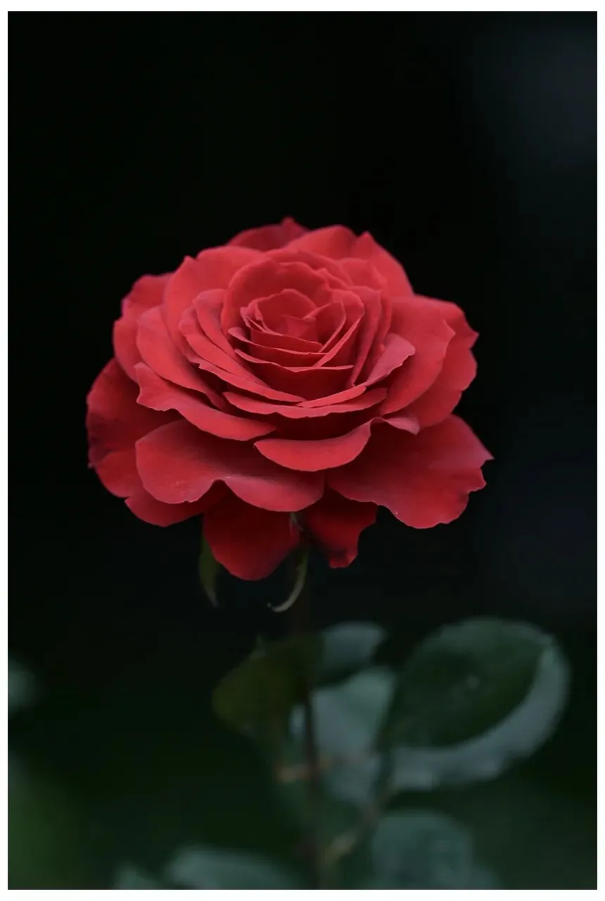拍摄这张照片是在广州的云台花园,那里有个玫瑰园,各色各样的月季争奇斗艳。正所谓花多眼乱,都无从下手。我选了一些自认为好看的花朵来拍,可是拍出来的效果并不出彩。这时候太阳也准备下山了,光线渐暗,正当气馁的时候,突然发现路边这支开得正艳的红玫瑰在孤芳自赏。她形态饱满,娇艳欲滴,马上吸引了我的目光。我尝试了不同的角度拍摄,发现还是背景暗的拍出来好看。12月的广州,天色暗得比较快,这时候发现有好的器材真的很重要。大光圈虚化了杂乱的背景,加上背景较暗,就形成了天然的黑背景(本人比较抵触用黑布做背景的哈)。我用正常的曝光拍了几张,发现红色会发白发亮,完全没有质感。我回想了考拉老师讲的知识点,就尝试减了一档曝光,发现效果就不一样,红色不会反光了,还原了她丝绒般的花瓣色彩。红色的花配黑色的背景,还有一些绿叶衬托,主体突出,主次分明,拍出了自己比较满意的照片。当然随着后来进一步的深入学习,懂得可以机内调色、白平衡等知识,再增加一点饱和度,这张照片就更满意了。