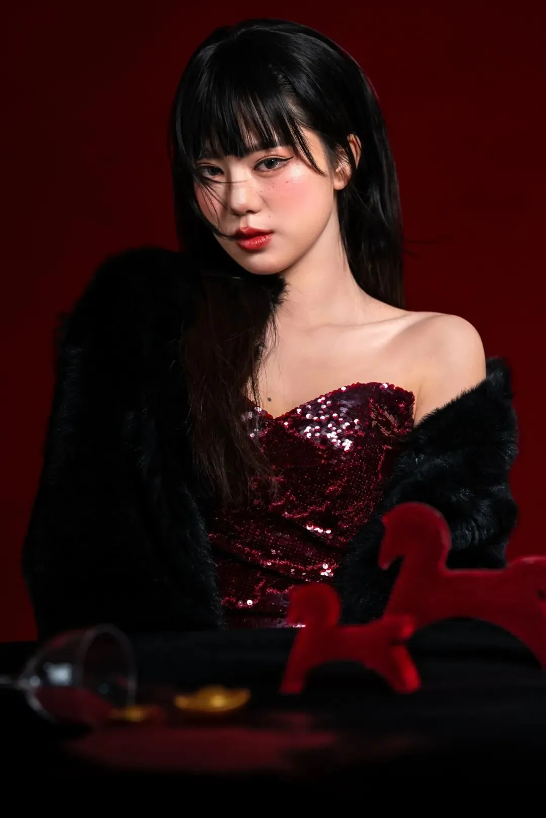 这张照片是在摄影棚内拍摄的,现场灯光环境比较复杂,在持续灯的色温选择上调整了很久。一开始用的是白光,但整体效果很不协调,最后决定改用偏暖的灯光拍摄。