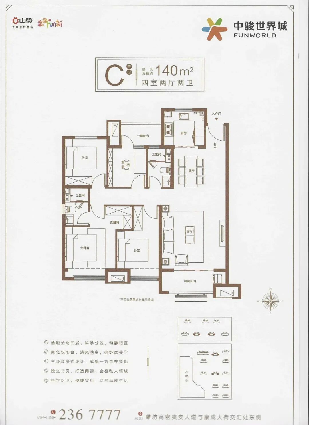 ④ 中骏世界城27楼133平,四室两厅两卫,毛坯,75.8万