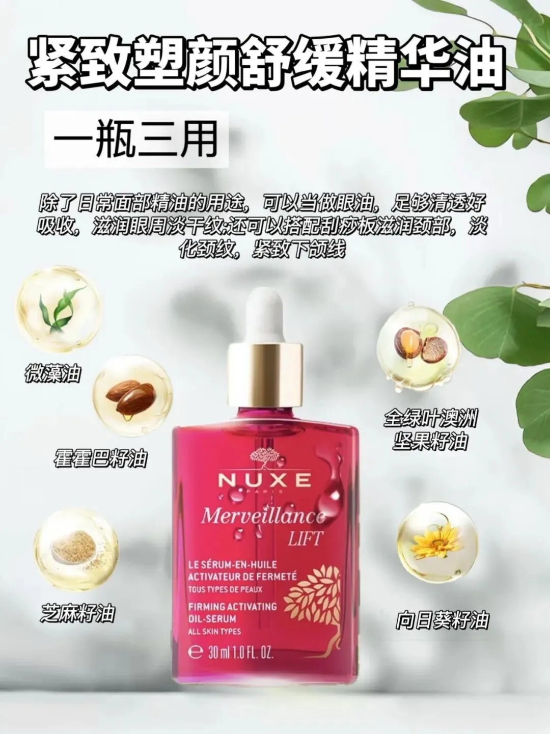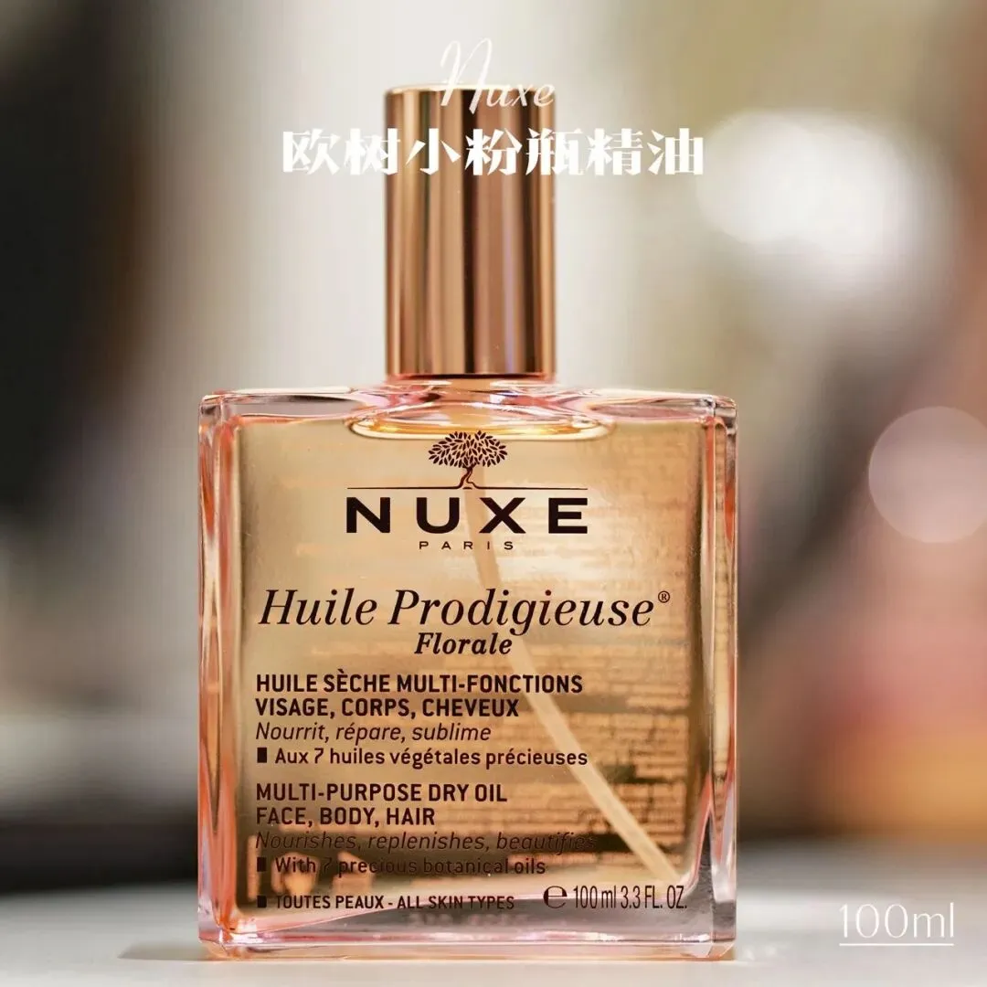 来自法国药妆的王牌护理油品牌 NUXE‼️ 每3秒就卖出一瓶的Huile Prodigieuse万能油 欧树小粉瓶精油100ml 旗舰店💰430一瓶!秒杀价建议两瓶起囤‼️ 粉色花香版,质地更加清爽,全肤质可用 脸部、身体、头发都能用的一瓶多效护理油 七种植物精油融合,嫩上加嫩! 自从用了这瓶油粗糙起皮就没见到过! 仿佛是那种每天大补红枣、燕窝的气血感!