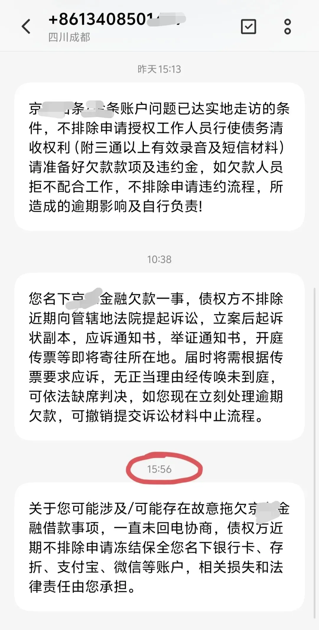 态度平和,告知我欠款金额,简单了解了一下我的情况,为什么没有还款,说后续会取消后面的分期,提前释放,然后不处理就会走程序冻结微信、支付宝、银行卡。