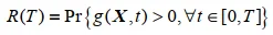 在寿命周期[0,T]内,产品的可靠度R(T)可以表示为性能函数g(X,t)大于0的概率: