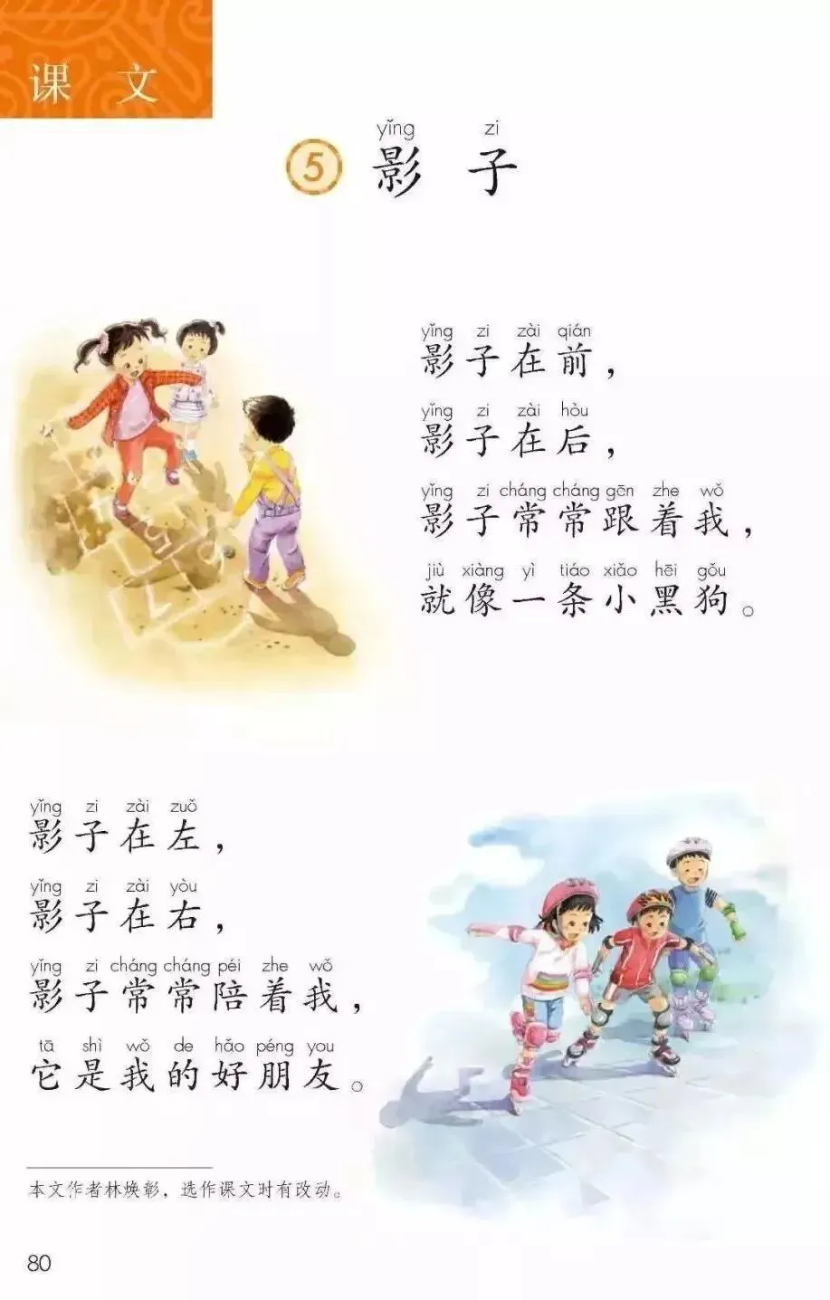 拿一年级语文上册的《影子》来举例: