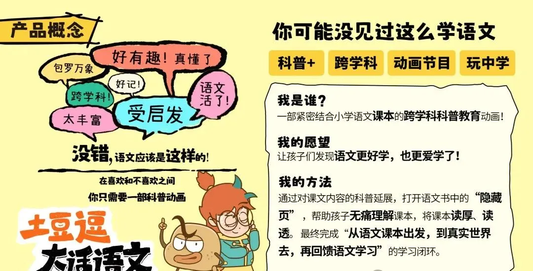 土豆逗的出品方是文化央企中图集团旗下的品牌一园青菜,专注于儿童科普的原创,既有动画视频,也有科普童书,是非常扎实低调的团队。之前火爆全网的孩子超爱的《土豆逗科普》就是这个团队做的。