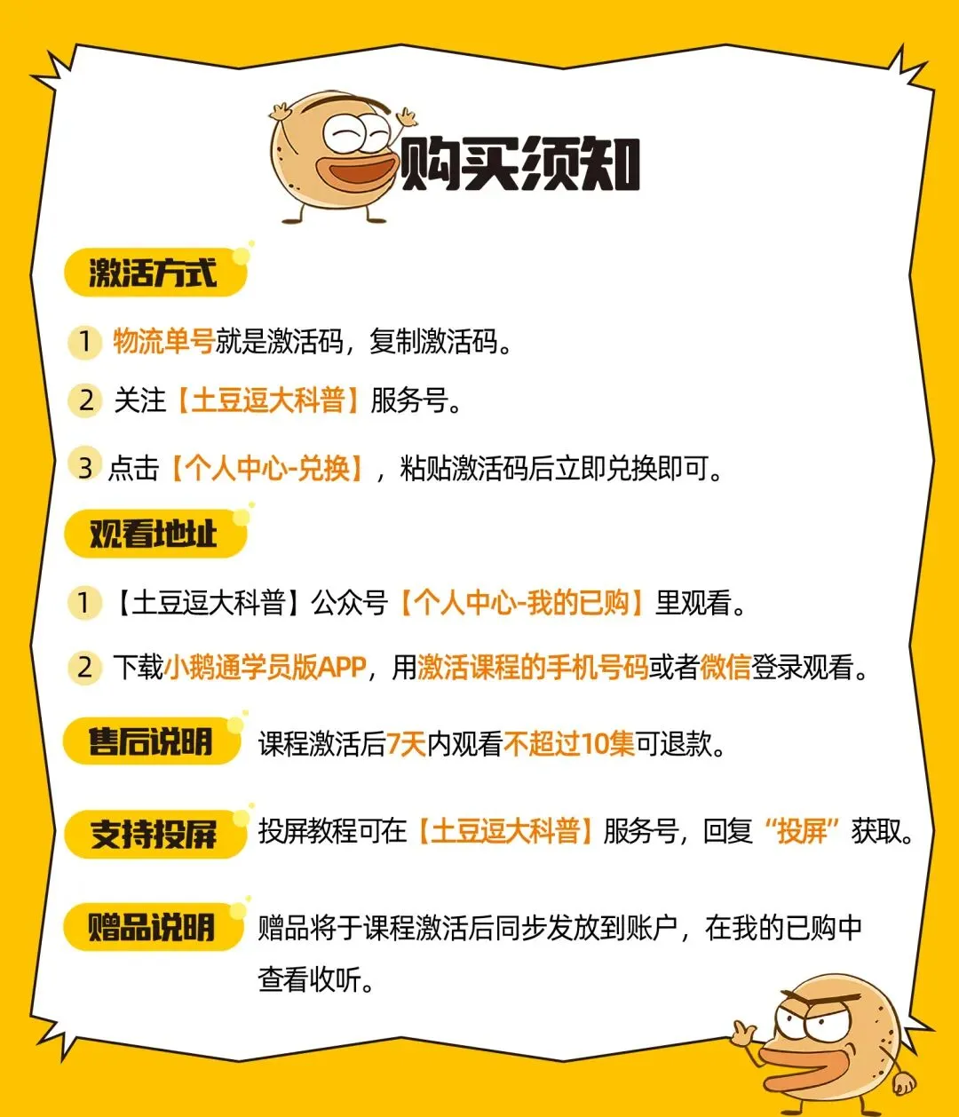 购买后,进入【土豆逗大科普】服务号-个人中心-我的已购;