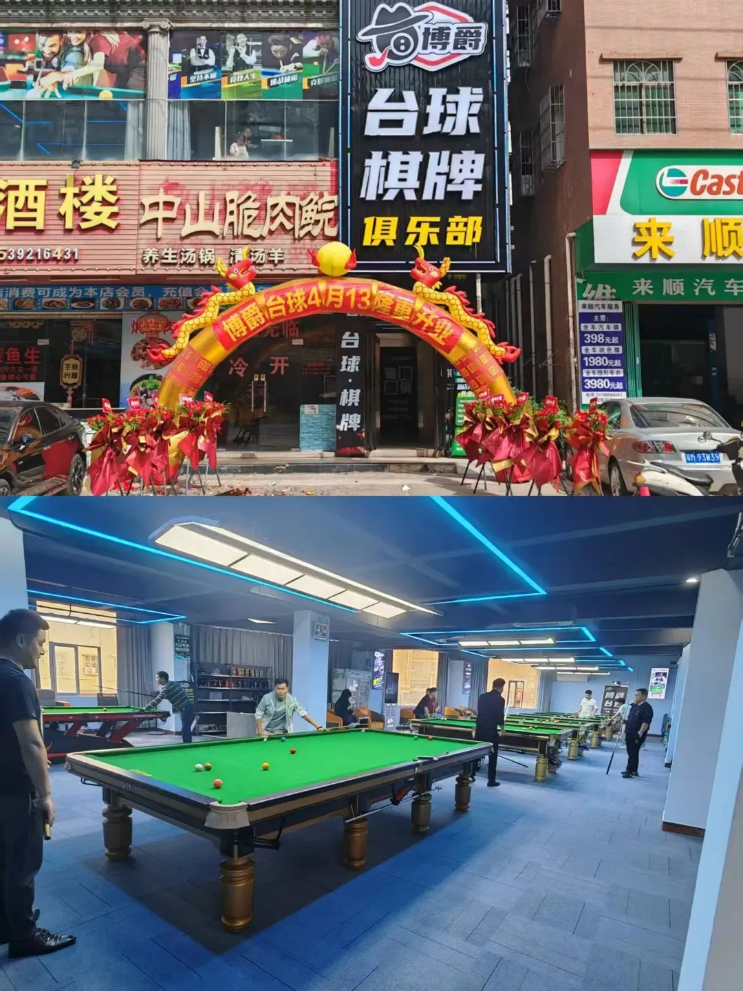 店铺特点描述:装修很好,花了18万,因改赛道没时间经营,有一百多平方,两个店面打通,两个包箱,棋牌室一间,办公室一间,一个,转让费面议
