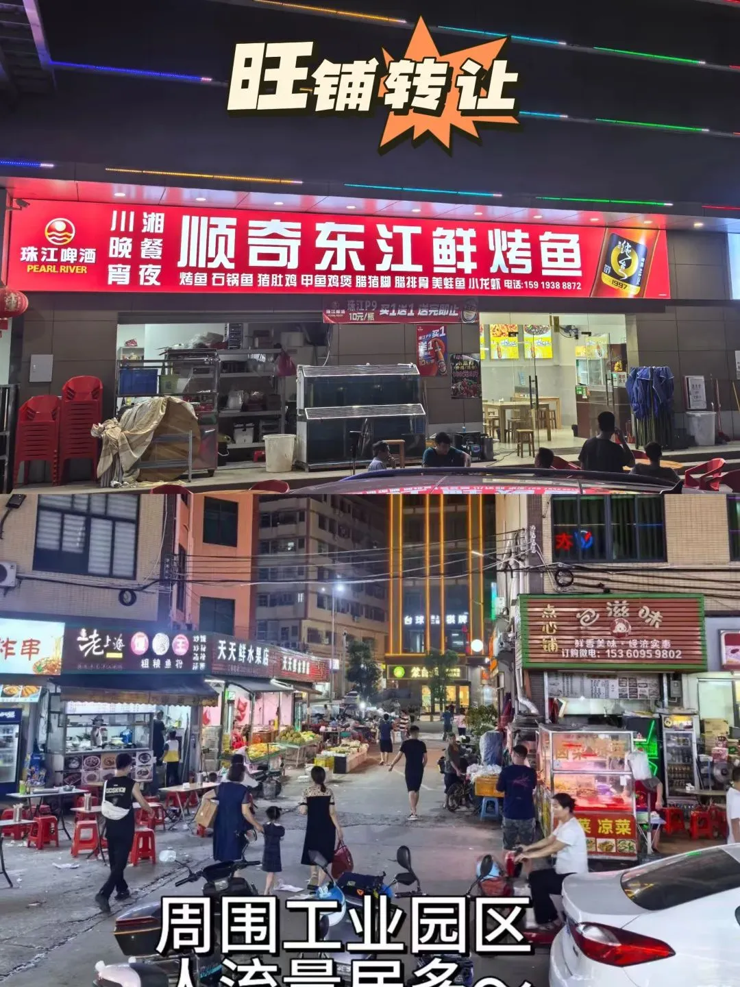 店铺特点描述:外摆100多平空间很大有停车位。前期投入费用七万。现1.8万转让加所有设备,押金不算,停车位充足,周边客流充足,之前烧烤炒粉炒面,因另有发展,适合夫妻情侣创业都可以联系电话:13433593585