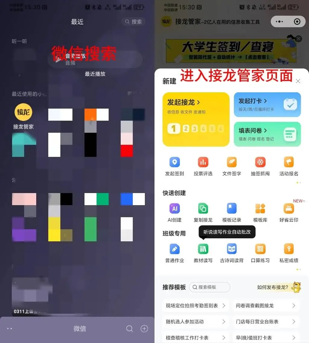 接龙管家是一款超过2亿人在用的小程序,搜索就能用,不用安装任何额外软件,不用注册账号,不用记密码,一键登录,3秒就能进入签到页面~