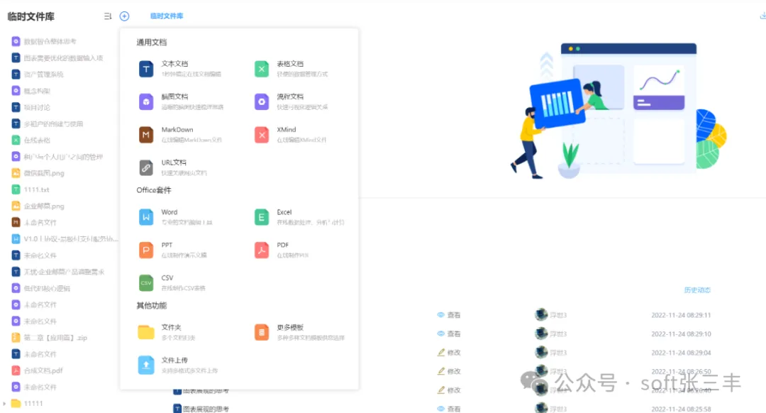 集成多种文件编辑器(富文本编辑器、在线表格、在线脑图、在线流程图等,编辑器将会持续扩展)