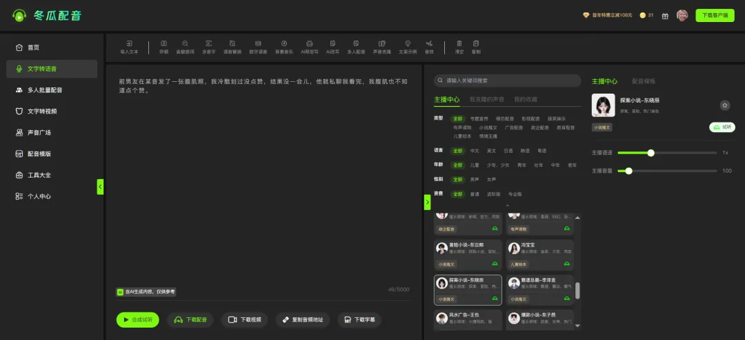 如果想找一款省心、免费、好用的配音工具,直接选冬瓜配音就够了,日常做视频、做课件的配音需求都能满足,能省下超多时间和金钱,需要配音的朋友赶紧收藏试试!