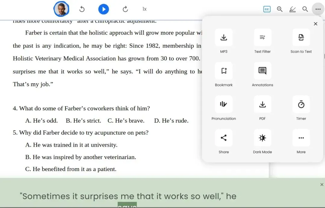 如果只是日常听文本、练习外语发音,用它的免费试听功能就足够了,体验感也很不错。