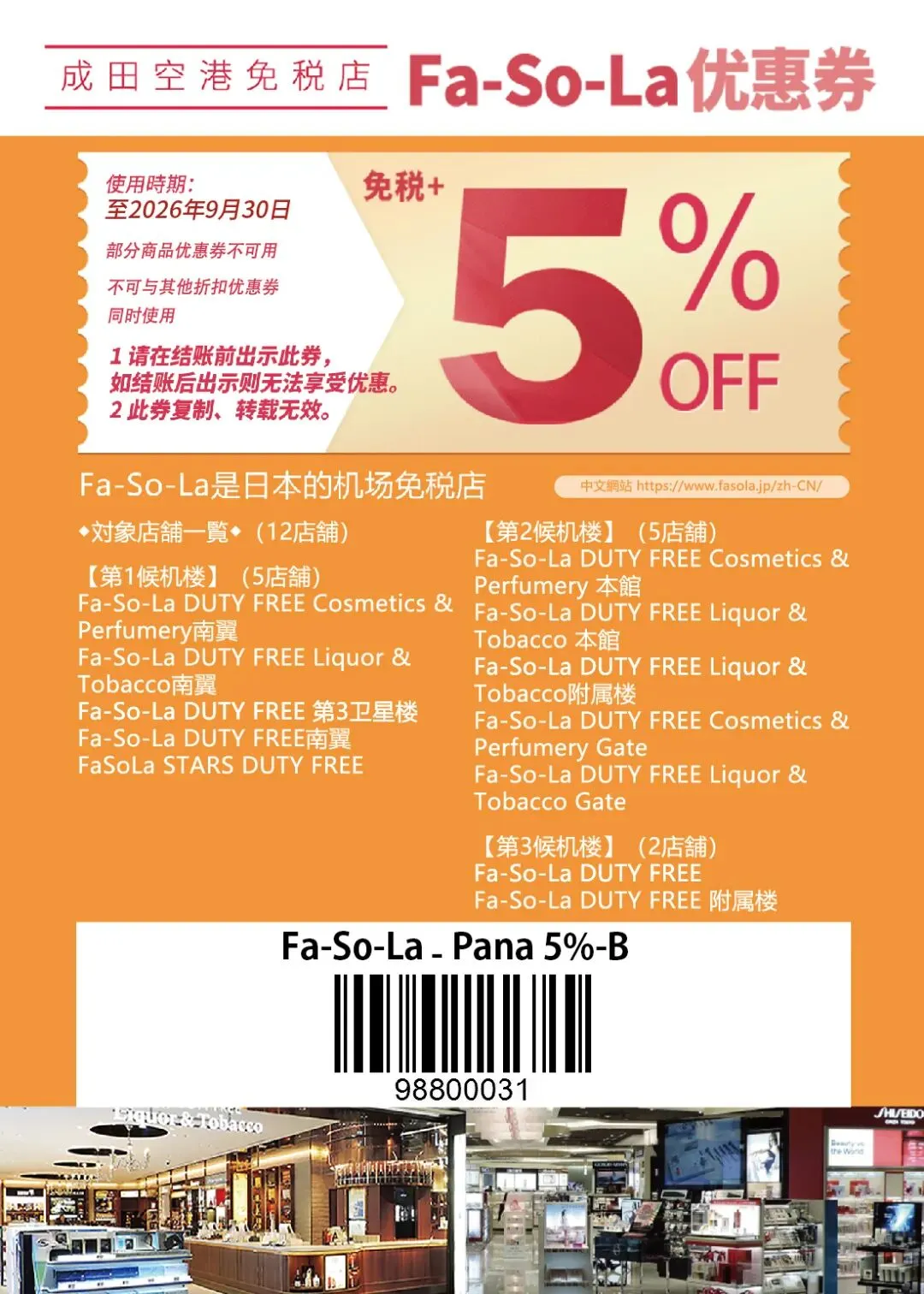 东京成田机场优惠券:省钱神器Fasola95折优惠 有效期到26年9月