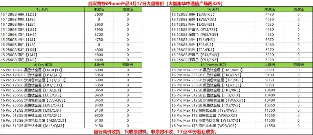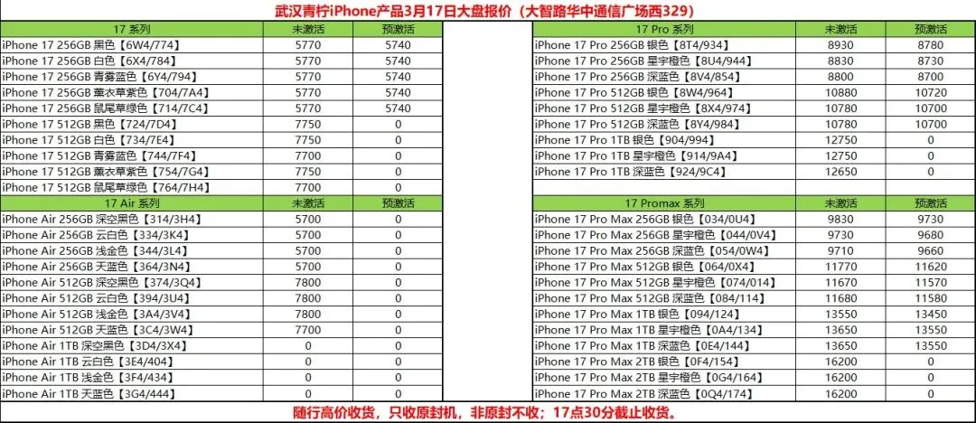 3月17日茅台酒水苹果安卓数码等行情