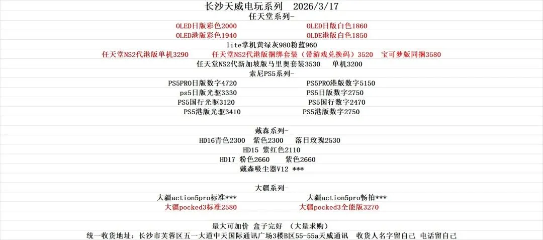 苹果安卓国产手机戴森任天堂长沙回收地址:湖南省长沙市芙蓉区五一大道中天国际通讯广场3楼b区55天威通讯