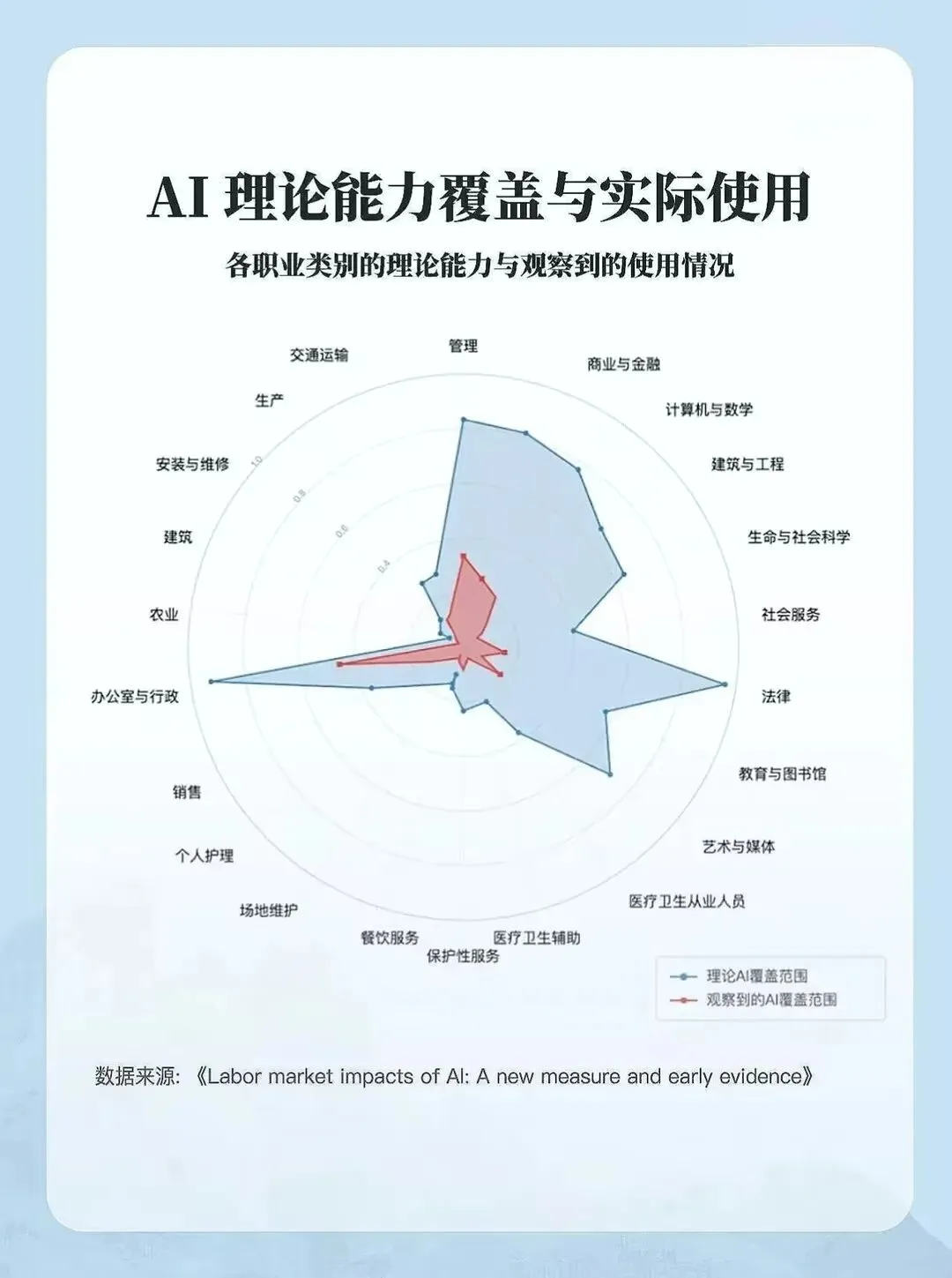 原本只是日常感慨AI越来越好用,直到看到开发Claude的科技巨头Anthropic发布的一份重磅报告,才彻底把我拉回残酷的现实。这份报告里提出了一个扎心的概念——“AI暴露度”,简单来说,就是衡量一份职业里,有多少工作任务能被AI直接自动化替代,而报告给出的结论,更是戳中了无数白领的痛点:白领阶层正在面临前所未有的大衰退。