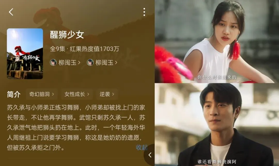 PS:另一个同名剧,人家才九集,就是老老实实宣传一下舞狮,讲一讲舞狮文化的困境。