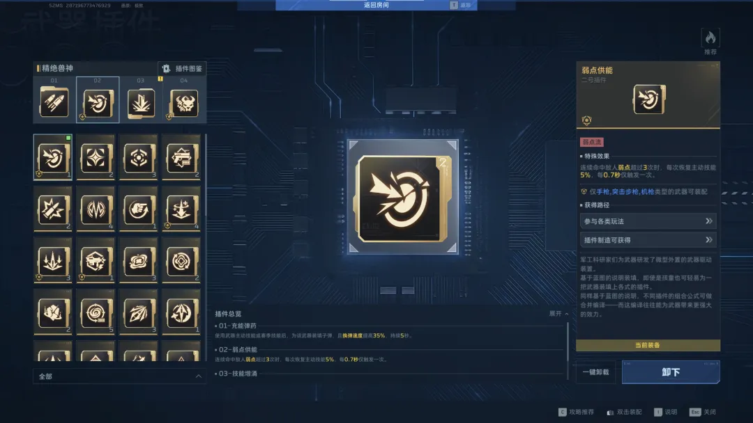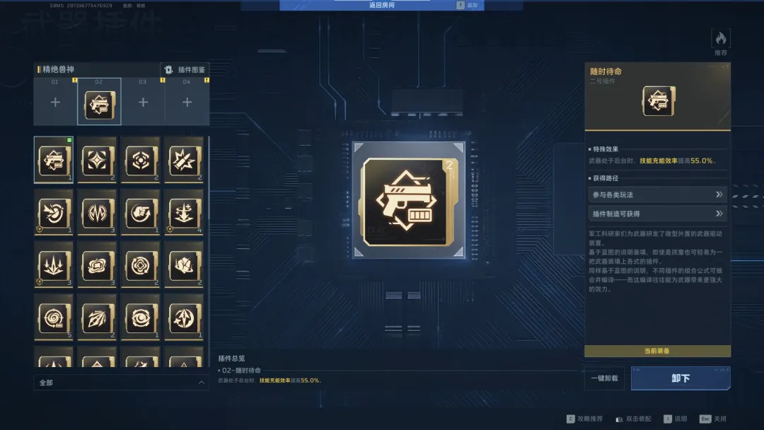 逆战未来的2号插件,除了闪身和出其不意会改变武器的技能外,其他插件均为供能插件,即改变武器技能CD时间的插件。