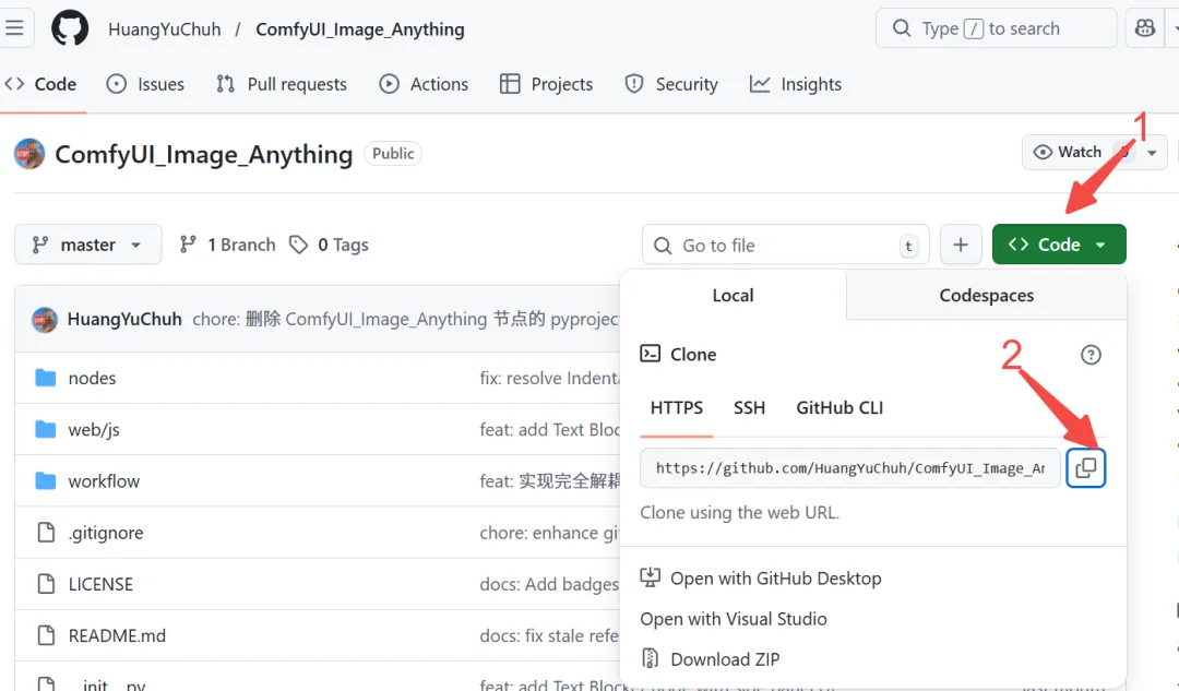 # git clone [仓库URL]git clone https://github.com/HuangYuChuh/ComfyUI_Image_Anything.git