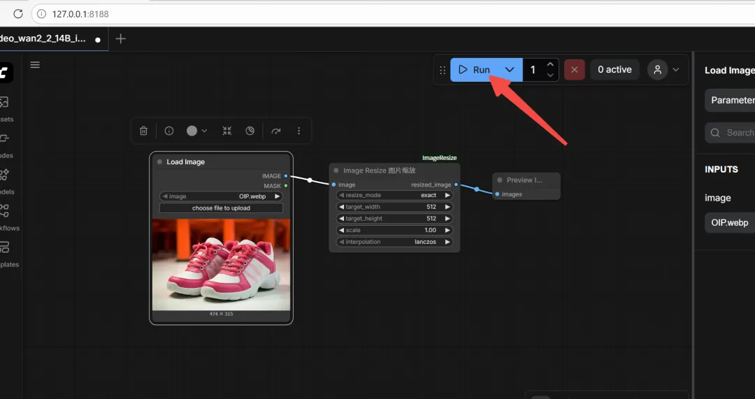 创建图像输入节点、图像预览节点: