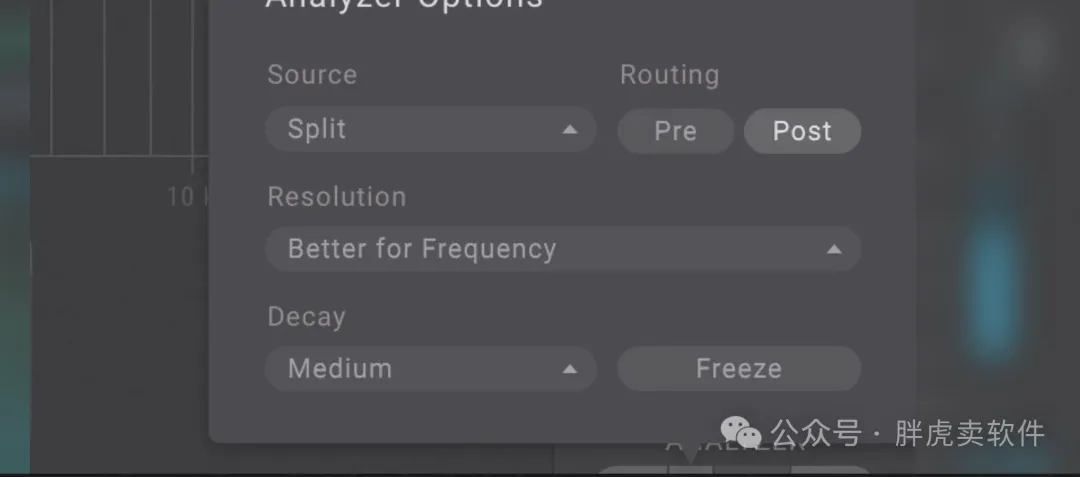 高分辨率、实时、音频组件频谱分析,具有多种监控或比较选项。SplitEQ 还具有峰值和 RMS 计量功能。