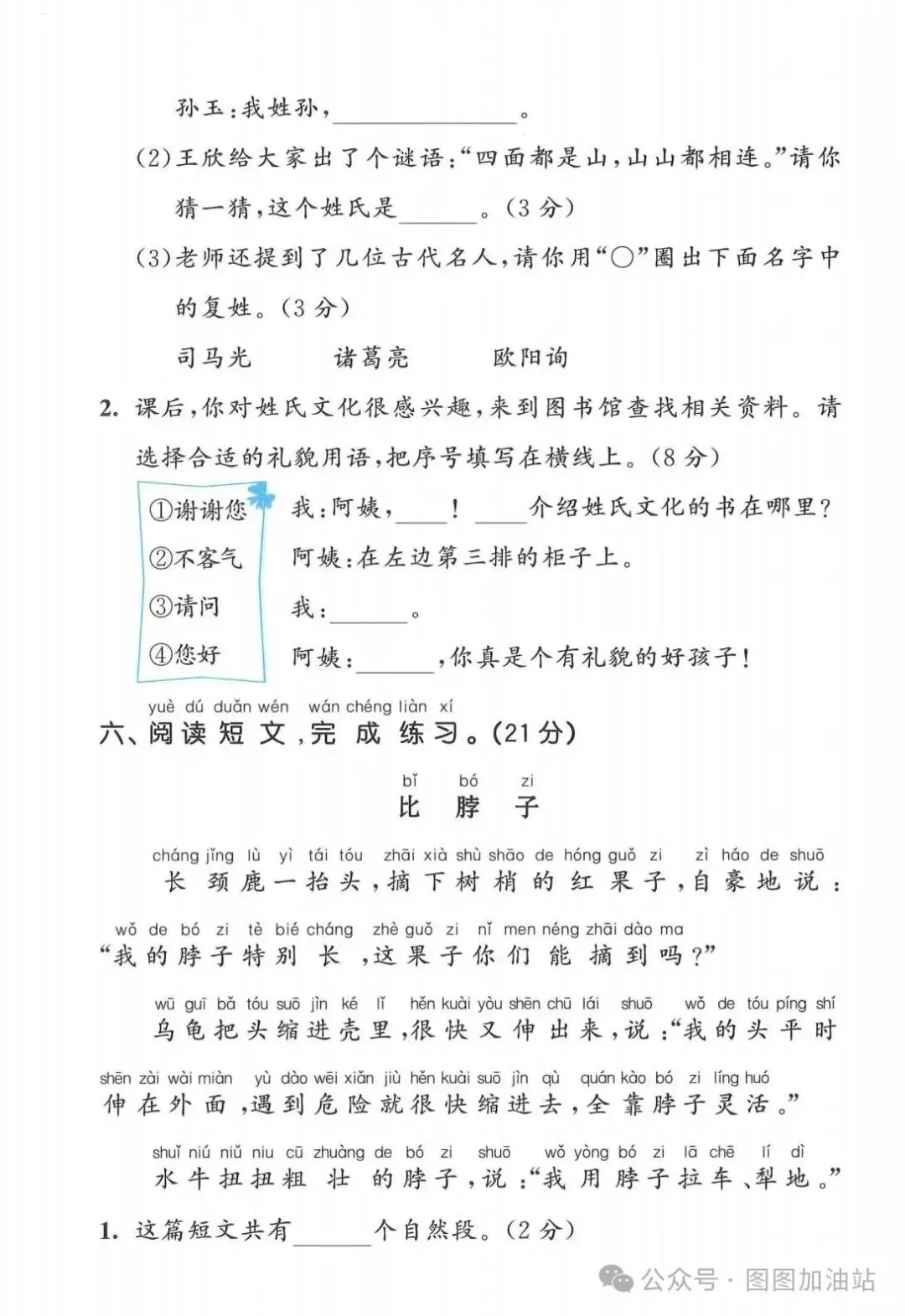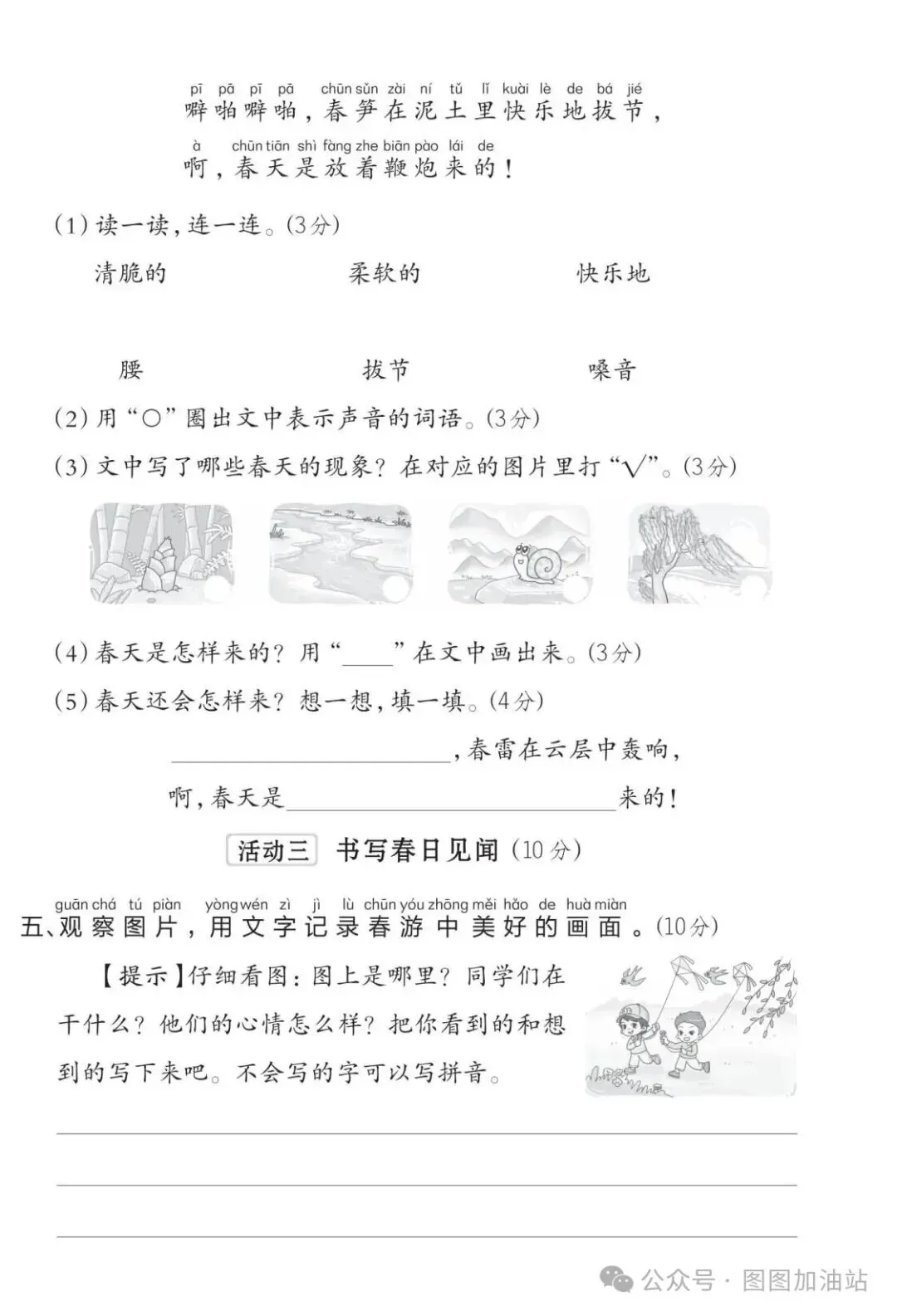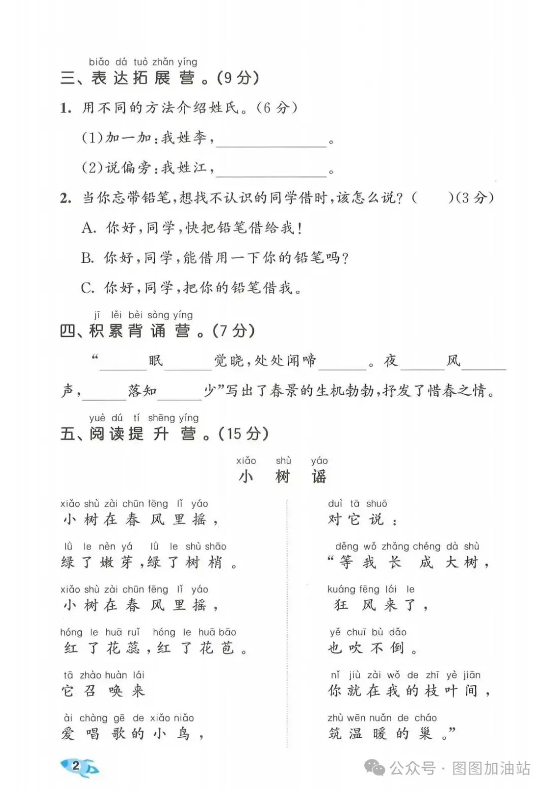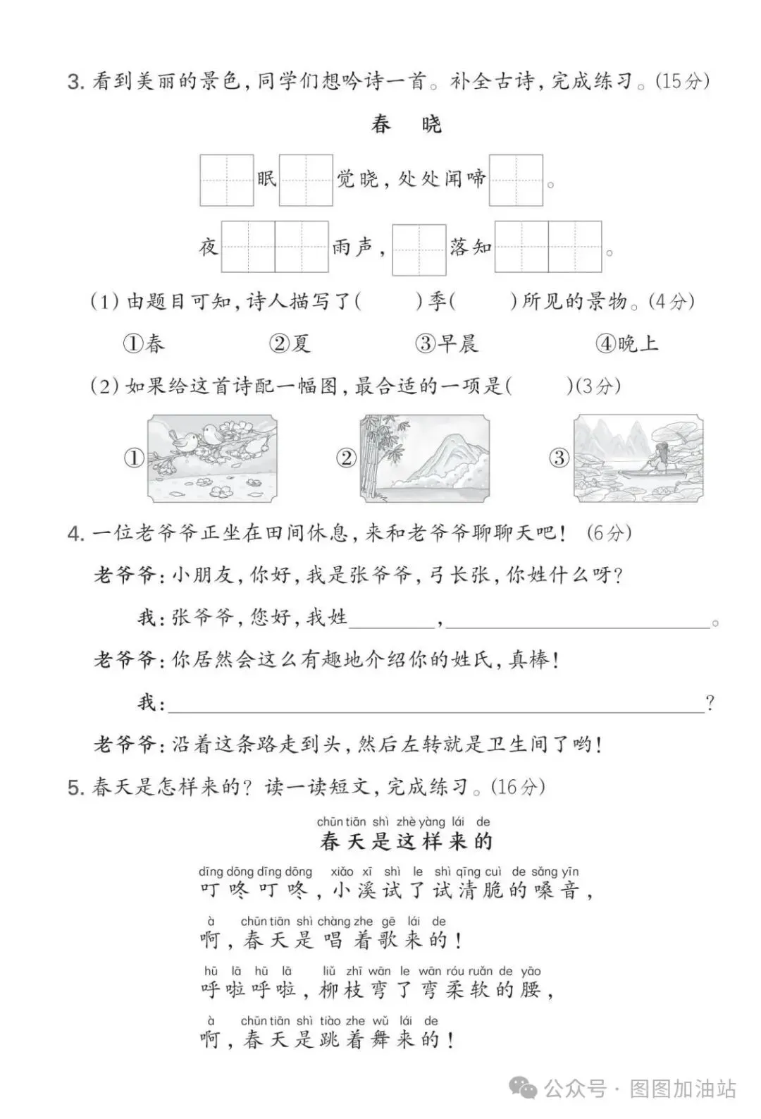 人教部编版一年级下册语文《第一单元测试卷》,共5套,含答案,可下载打印