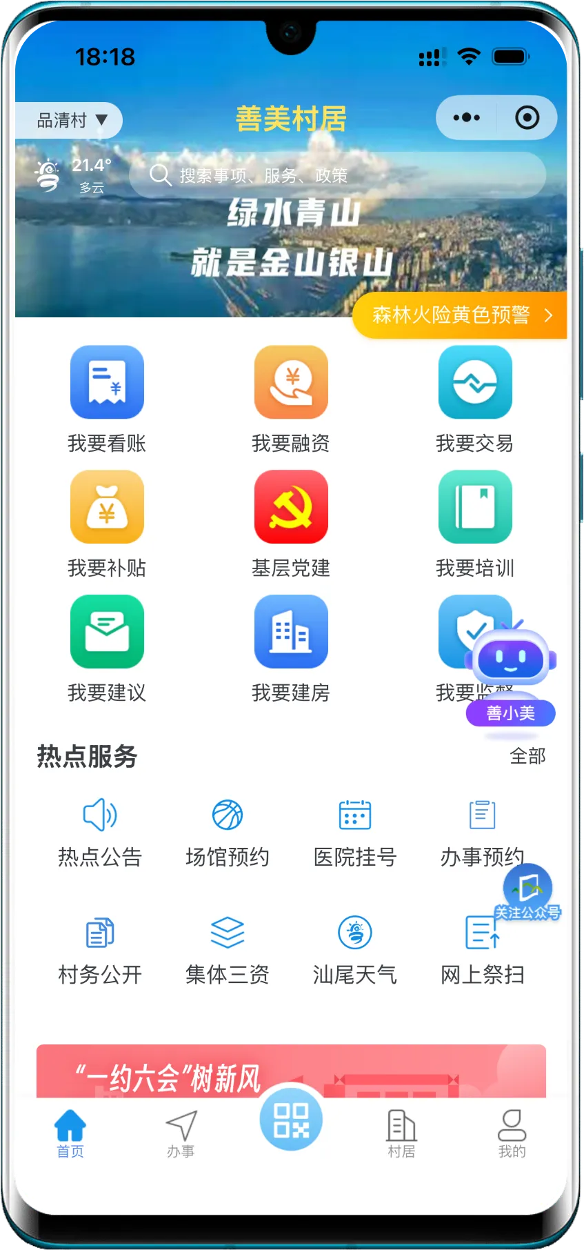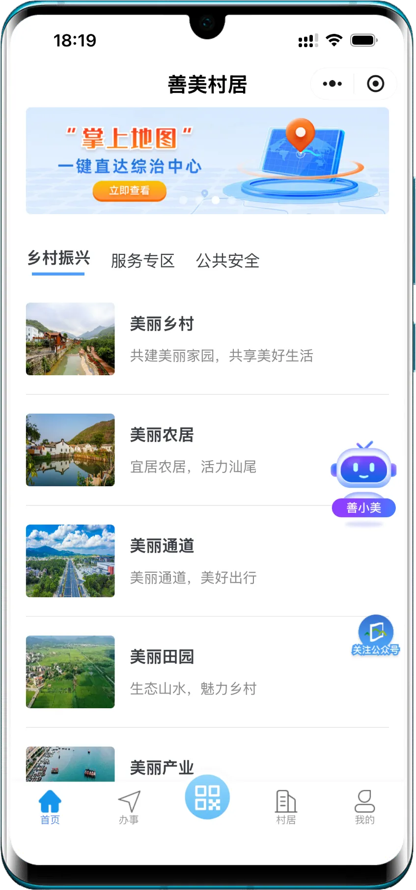 汕尾数字化创新实践中,以 “民情地图”为代表的基层治理模式成效显著。如果说“民情地图”是治理端的“智慧中枢”,那么“善美村居”小程序就是直达群众的“掌上家园”。这个充满活力的平台,将组织、农业、公安、人社等26个部门的服务深度融合,集成“我要看账”“我要融资”“我要交易”等九大板块、199项贴心功能,真正把村务、财务、服务都装进了村民的口袋。它不仅是办事窗口,更是晒出村务、参与监督、共谋发展的阳光客厅。在服务功能上,它已为医保报销等51个高频事项提供精准导办,累计引导群众“全流程网办”超1.7万次;在治理参与上,它已融入汕尾乡村日常,超过185万村民用它了解村情,累计访问量突破2亿次;村里49万余条公告、653.51万亩土地、超40亿元集体资金在这里透明公开。它已从一个应用,成长为连接千家万户、激活乡村治理的“数字纽带”与“活力社区”,成为全省瞩目的改革示范标杆。