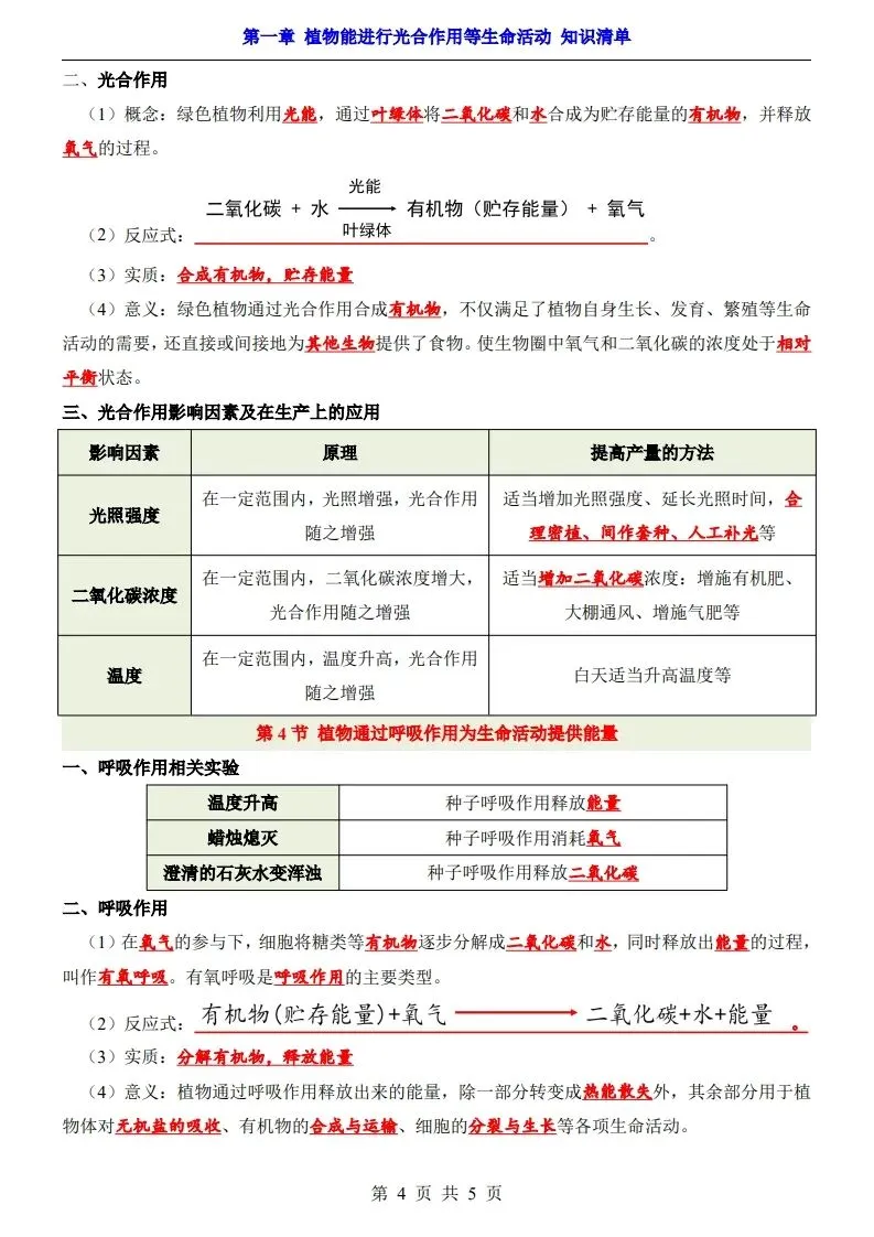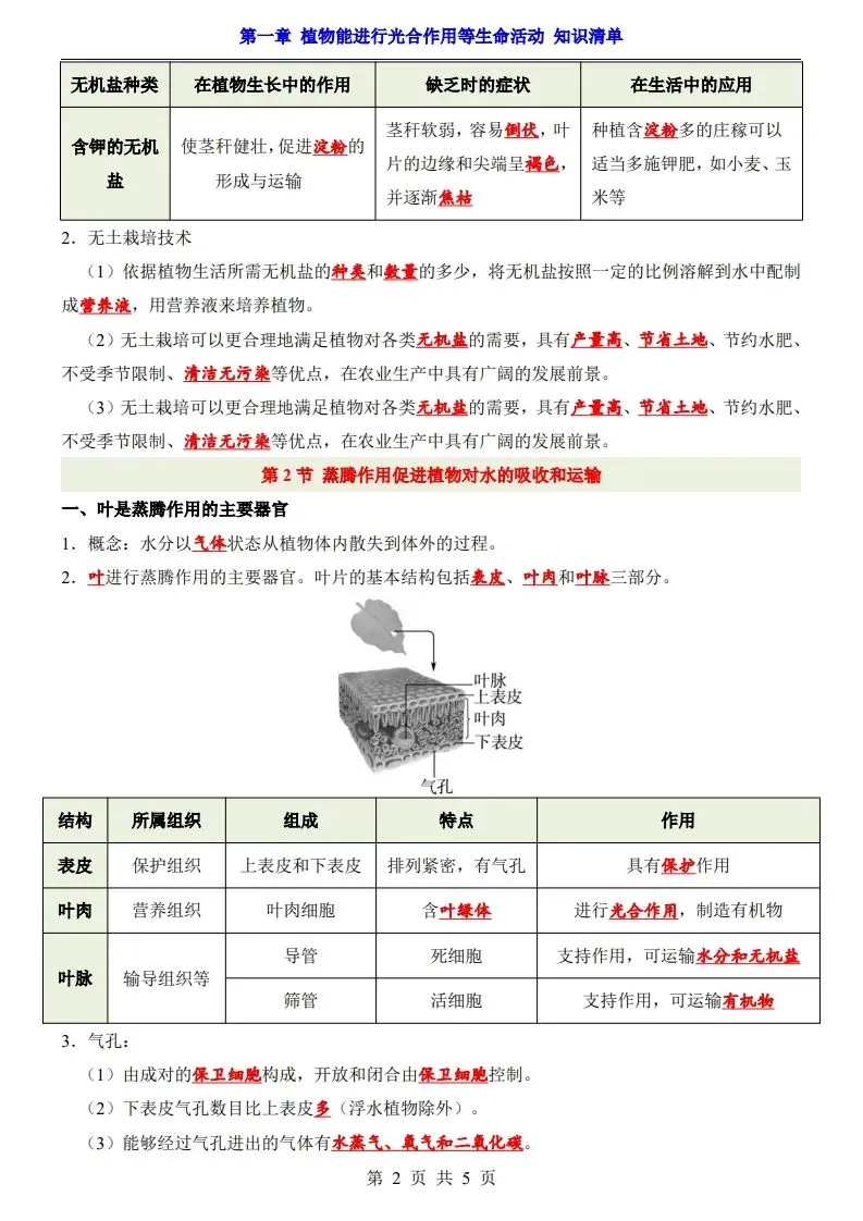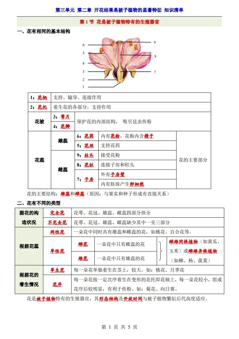 七下新版教材2026年济南版生物全册知识点总结背记提纲,电子版可打印使用!