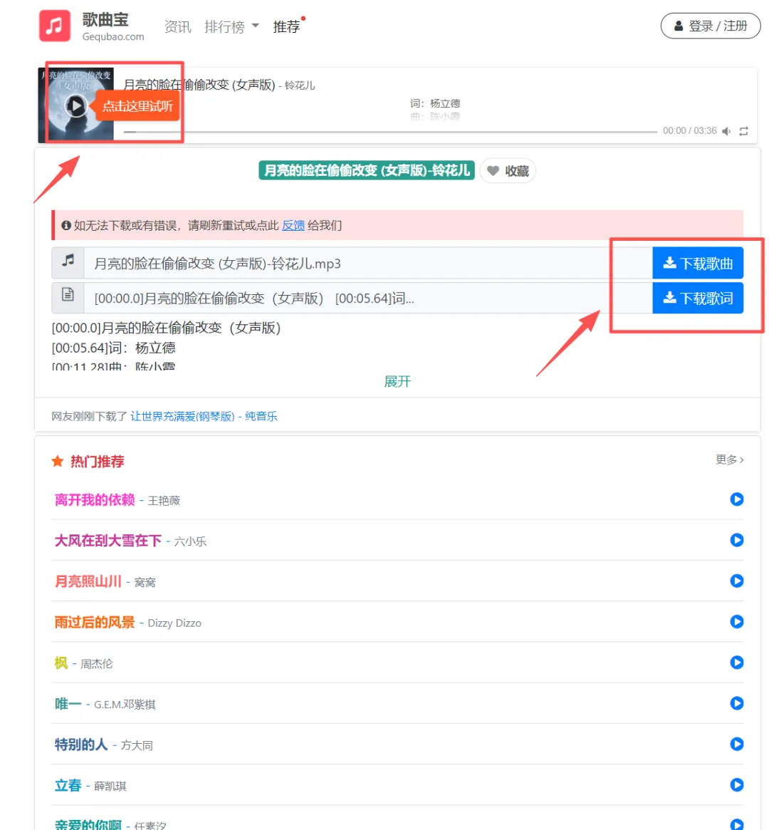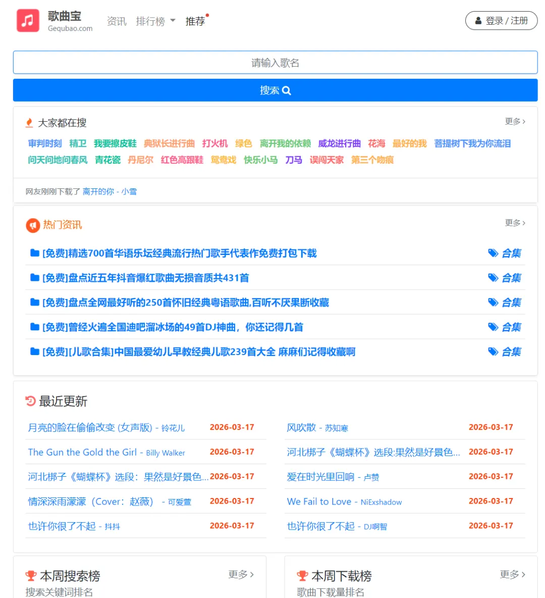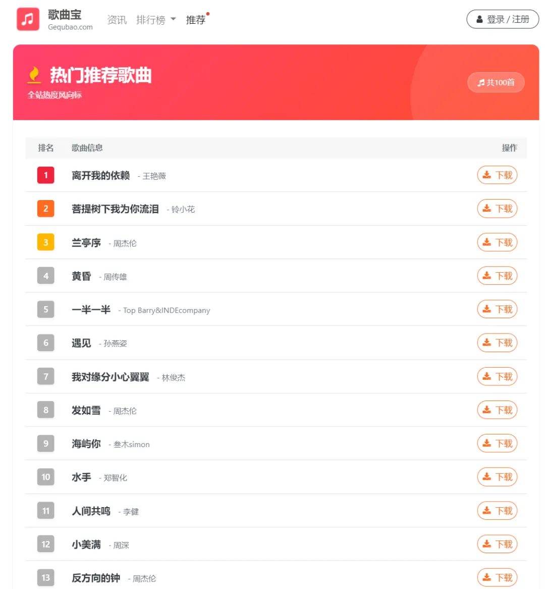 歌曲宝是一个免费的音乐下载平台,可以在线免费下载MP3歌曲、流行音乐、经典老歌等