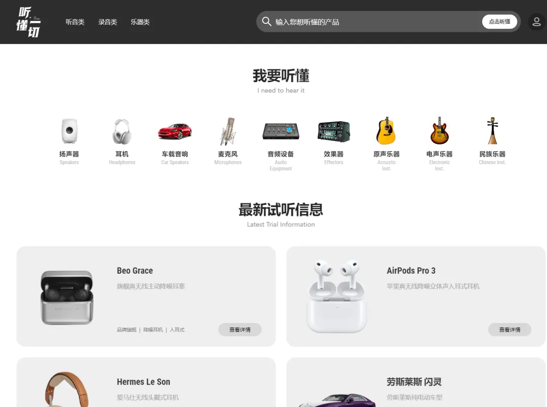 听音是一个音频设备、乐器以及录音技术的综合性平台,提供了全面的音频产品信息和试听体验
