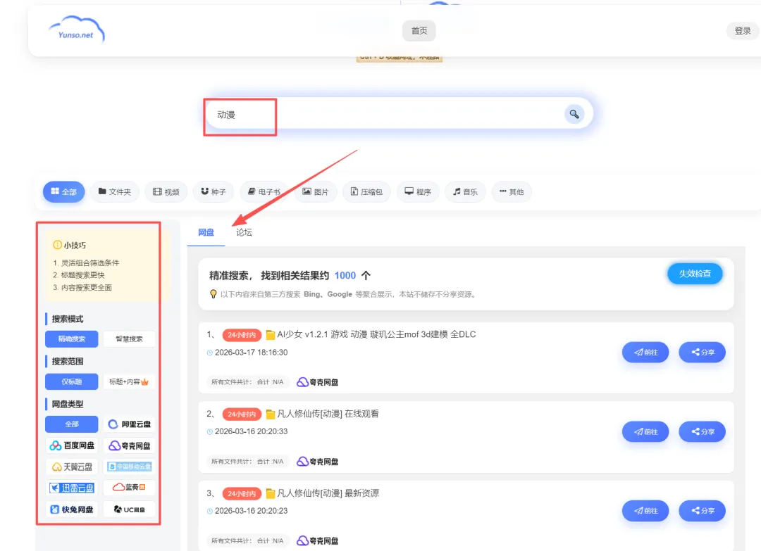 小云搜索是一个资源网盘搜索网站,基本上想搜啥都能搜到,包含动画,影视,电视剧,漫画、软件,资料、小说等等,资源相当丰富,我们只需输入关键词,即可获取相关云盘资源,并直接获得链接,方便我们保存或下载