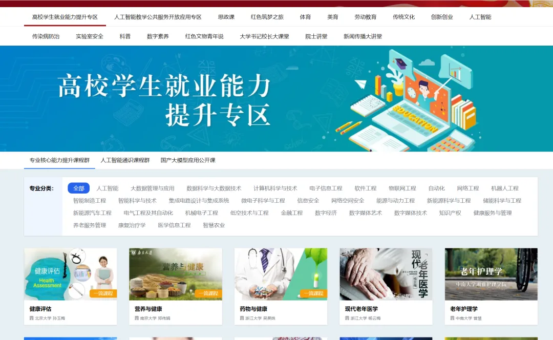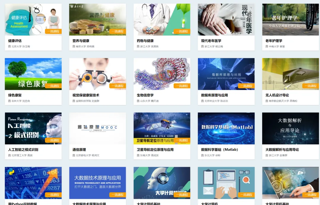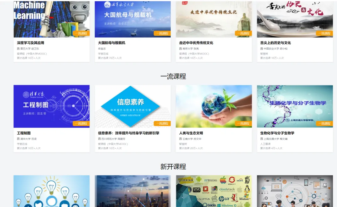 平台覆盖工科、理科、文史、医科等多个学科,包含一流课程、教材资料、虚拟实验、教师教研等资源,还有宠物健身、摄影等实用课程,