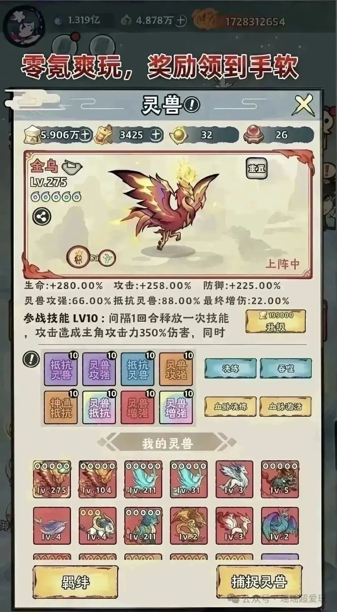 ·氪金玩家优先拉满应龙星级,其次麒麟;零氪党主养云翅鸟,后期转型白虎或红蜘蛛。