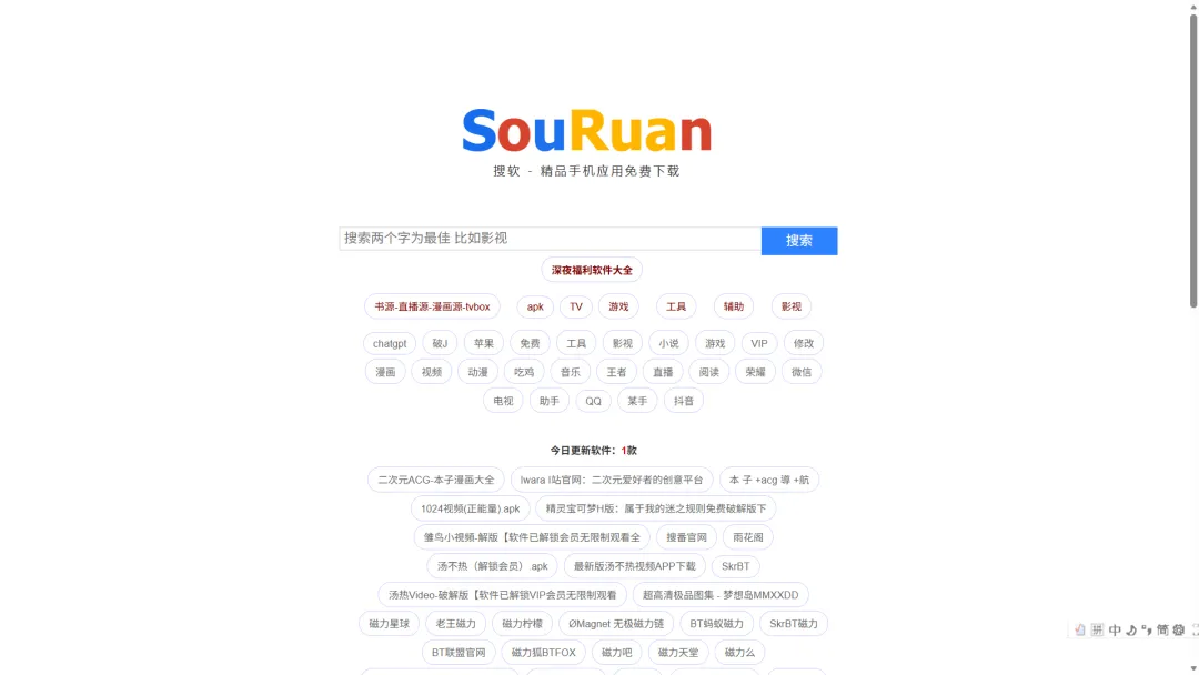 最新发现的一款软件搜索聚合网站,界面简单、无任何垃圾广告,同样资源种类丰富,支持关键词搜索、免费下载、手机电脑软件均有,可作为备用使用。
