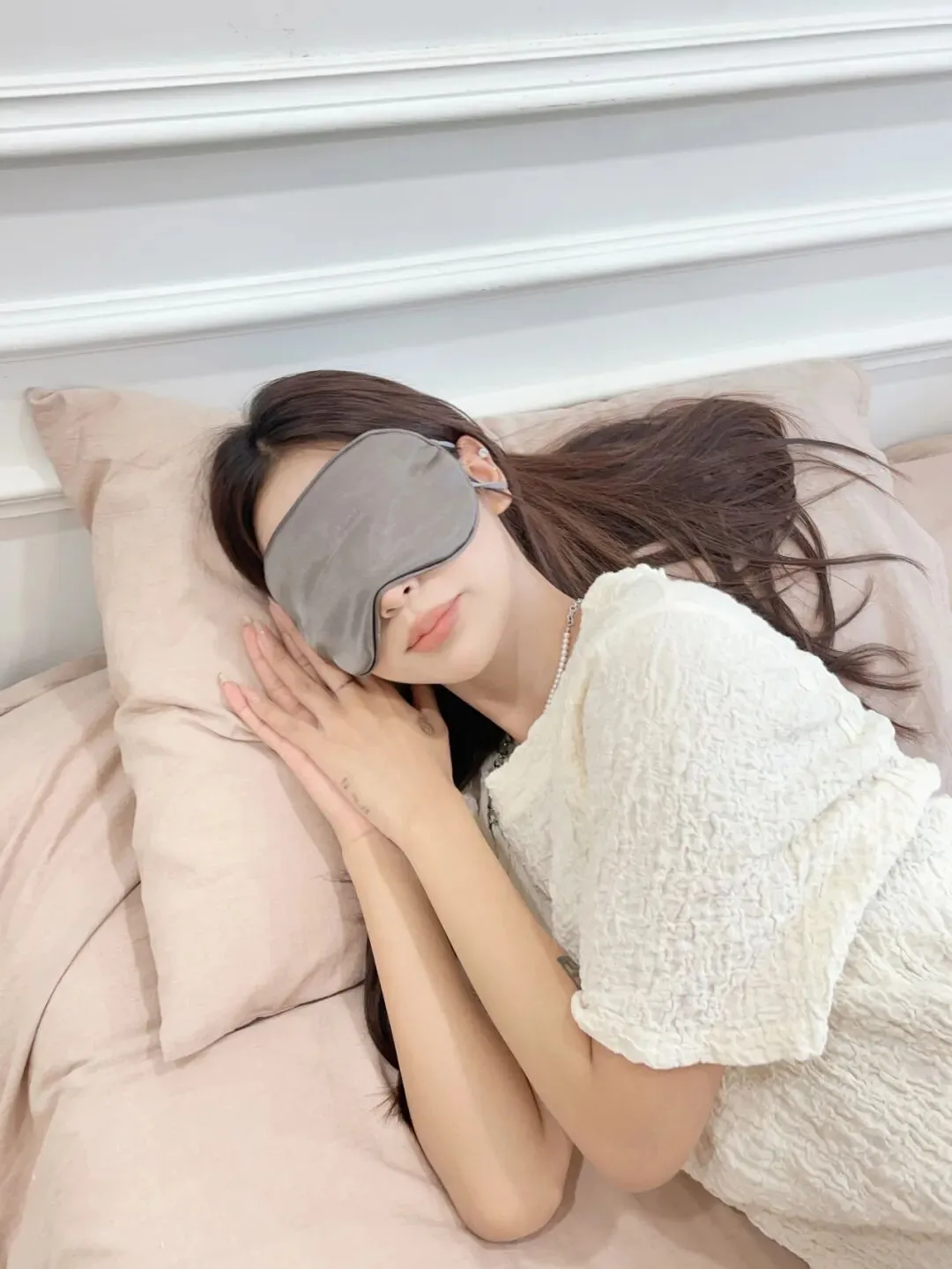 真丝材质亲肤柔和,不摩擦眼周娇嫩肌肤,戴上不压眼、不勒耳,透气不闷汗。