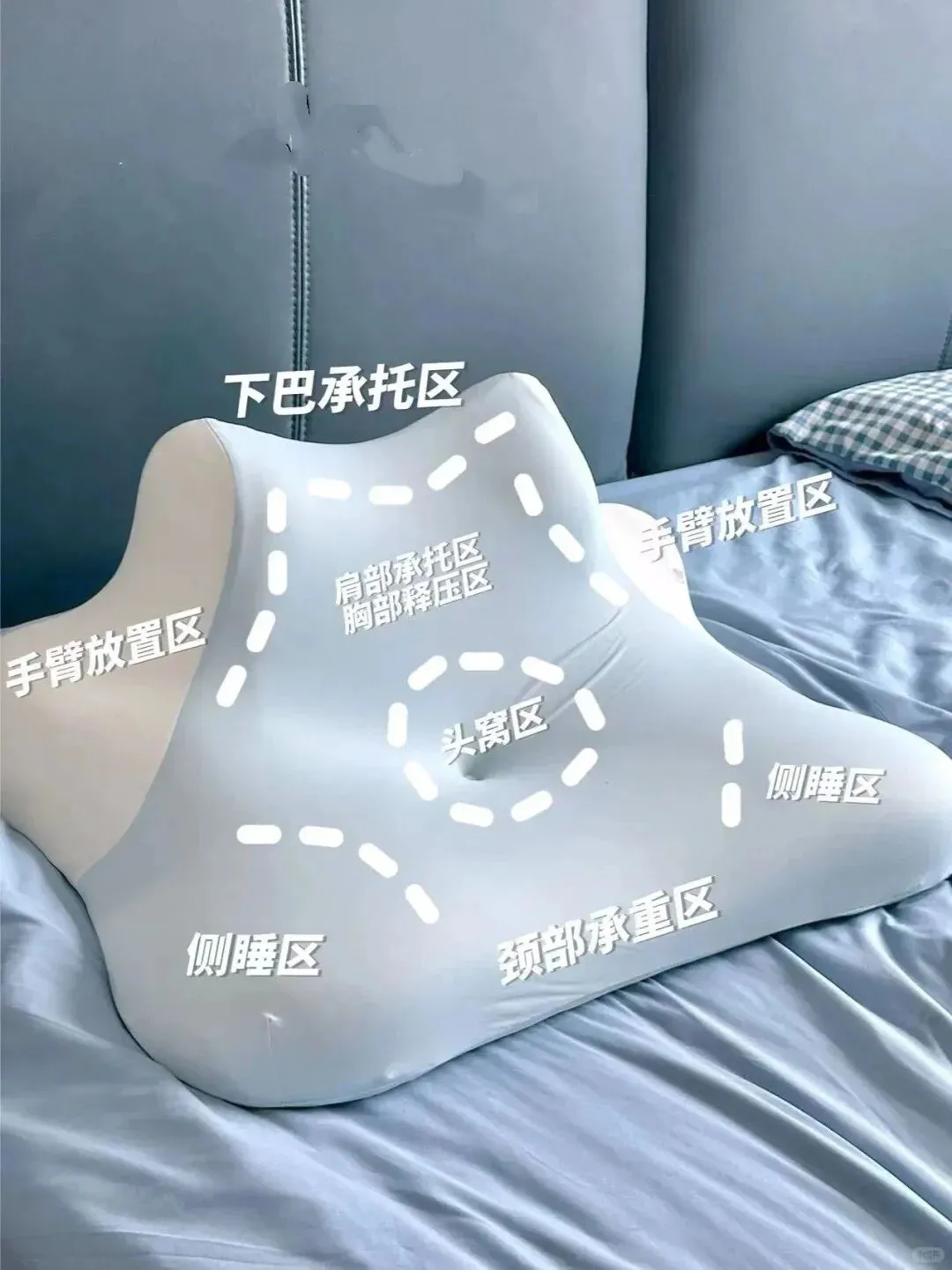 科学 135° 反向拉伸设计,分区支撑下巴、手臂、胸部,精准承托。高密度记忆棉慢回弹,压力秒释,持久支撑不塌陷。