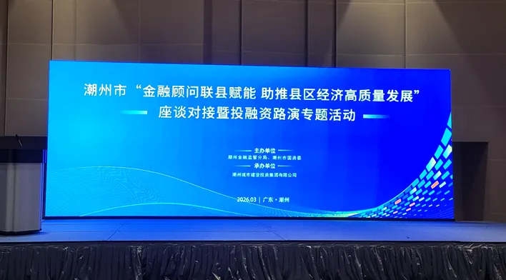 为深入贯彻落实“百千万工程”及广东金融监管局、广东省国资委关于“金融顾问联县赋能行动”工作部署,紧扣潮州市委、市政府重大项目攻坚突破工作任务,2026年3月17日,潮州金融监管分局、潮州市国资委联合举办2026年潮州市“金融顾问联县赋能 助推县区经济高质量发展”座谈对接暨投融资路演专题活动。