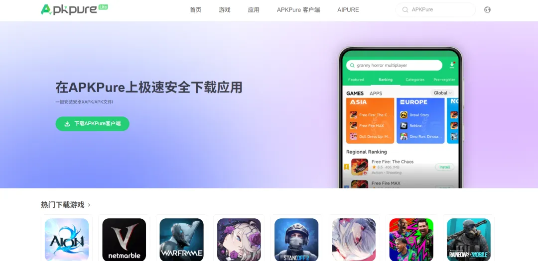 如果只是想下载一些常见的国外 App,比如工具类、游戏、社交软件,APKPure 基本都能解决。