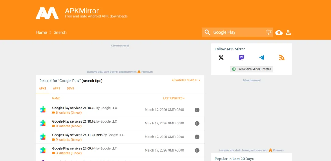 如果说 APKPure 更偏大众用户,那 APKMirror 在很多安卓玩家圈子里口碑会更高一些。