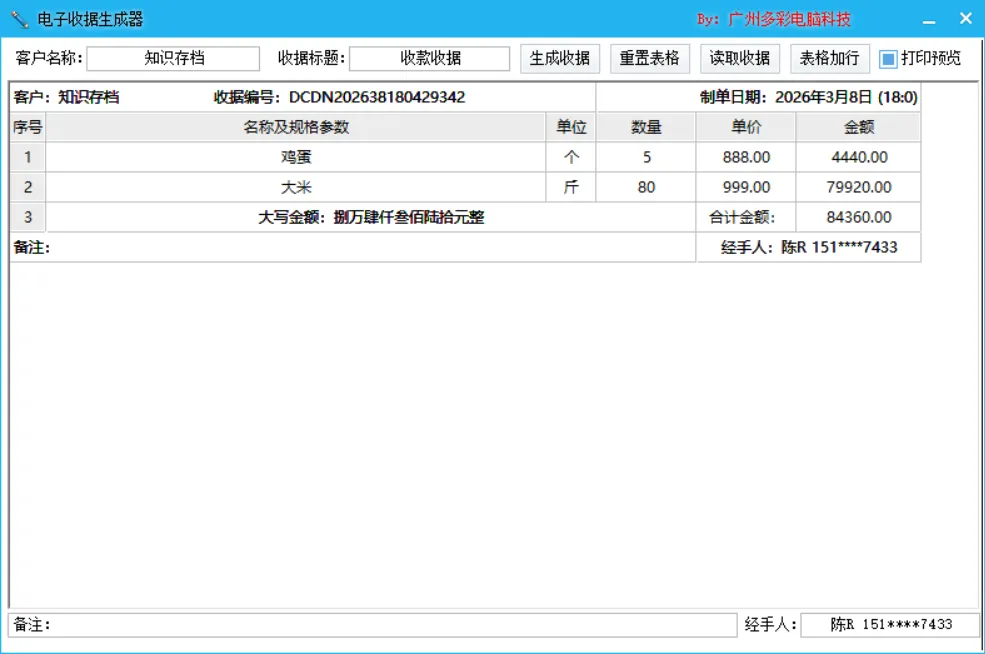 试试这款电子收据生成器,一键搞定金额计算、大写转换、编号生成,还能直接打印预览,让收款、记账、存档全流程更规范高效!
