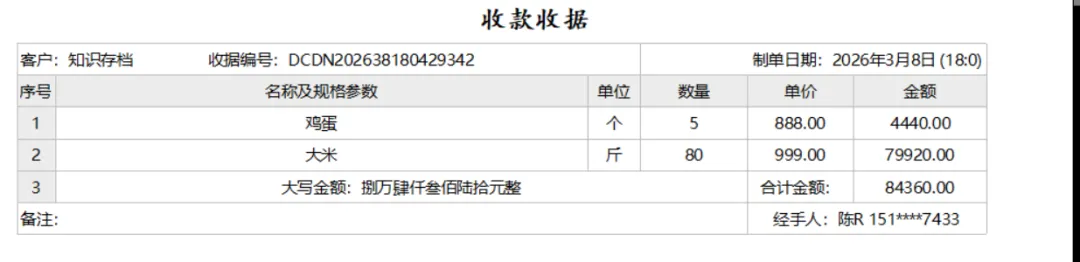 自动生成唯一收据编号和制单日期,形成完整规范的收据档案,方便后续存档、对账与核对。